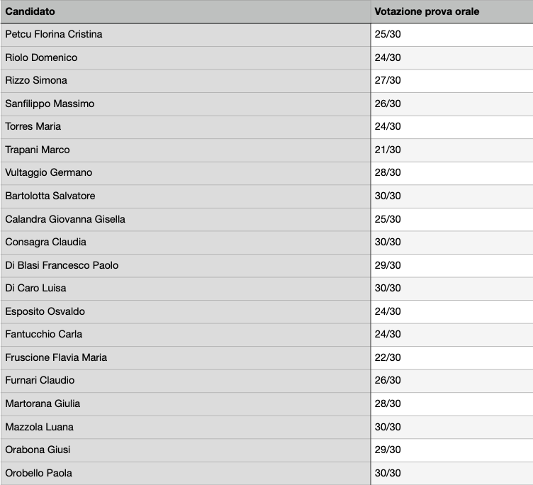 Concorso amministrativi, i voti della prova orale
