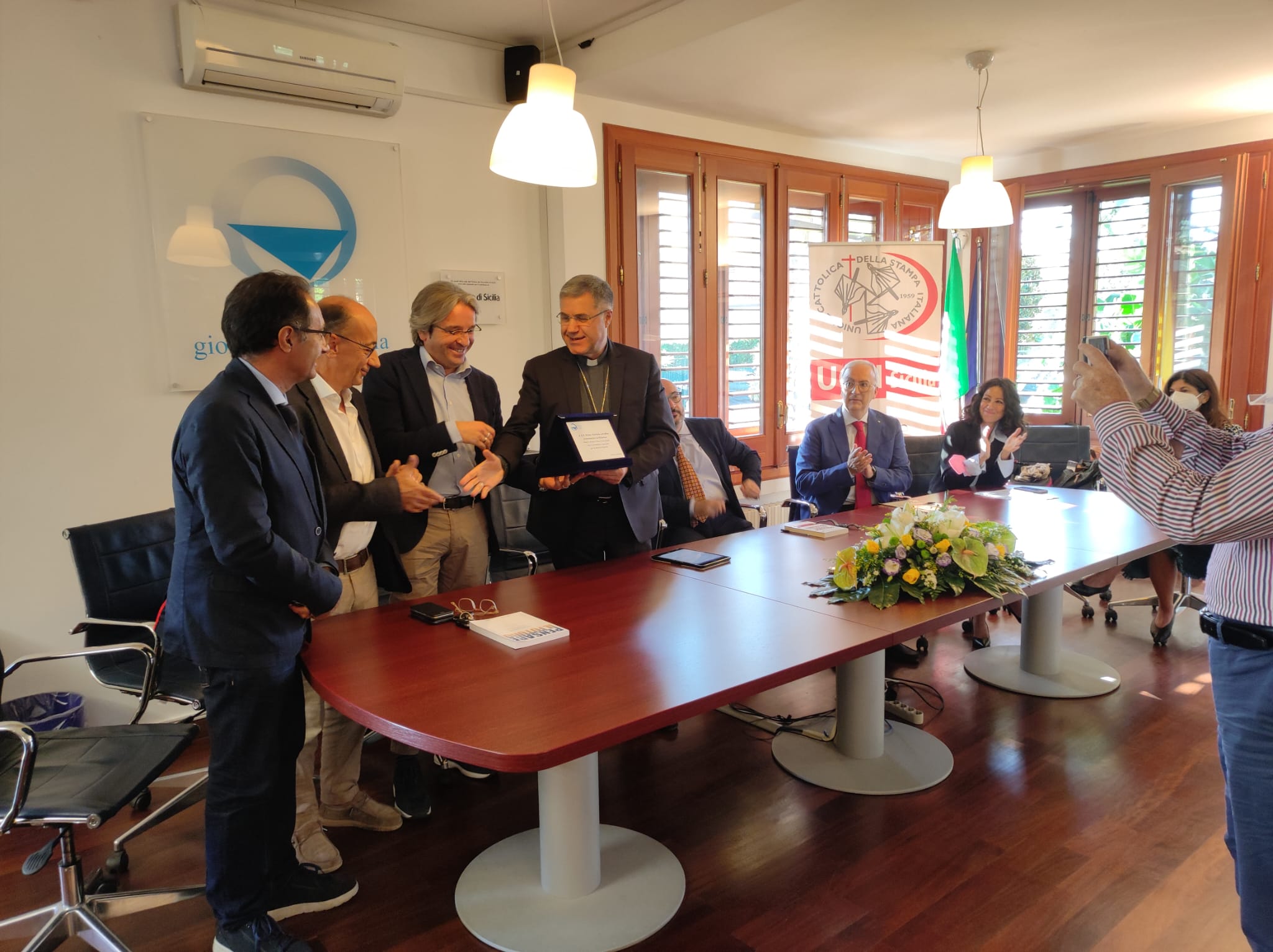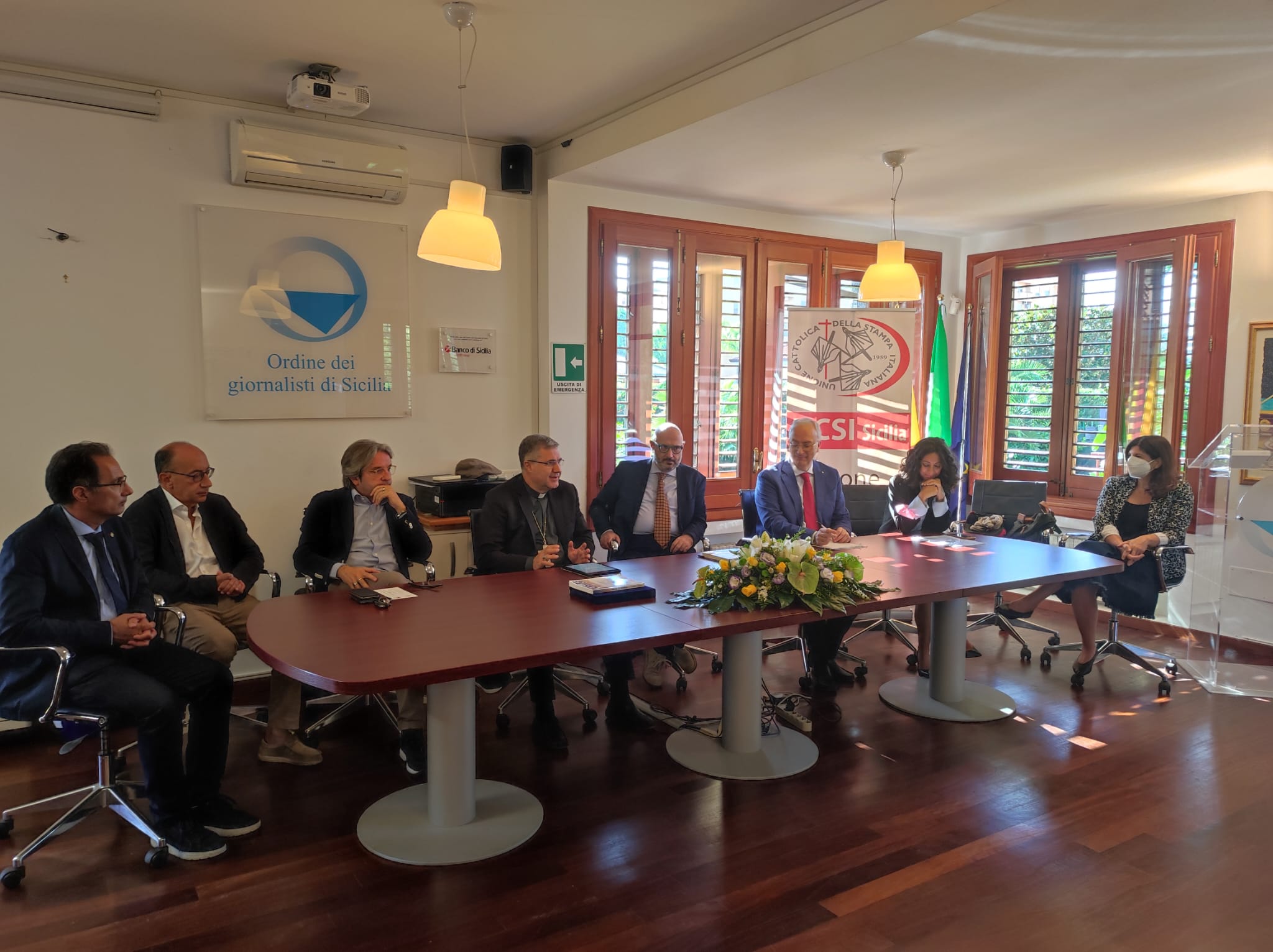 Monsignor Lorefice nella sede dell'Ordine dei giornalisti Sicilia
